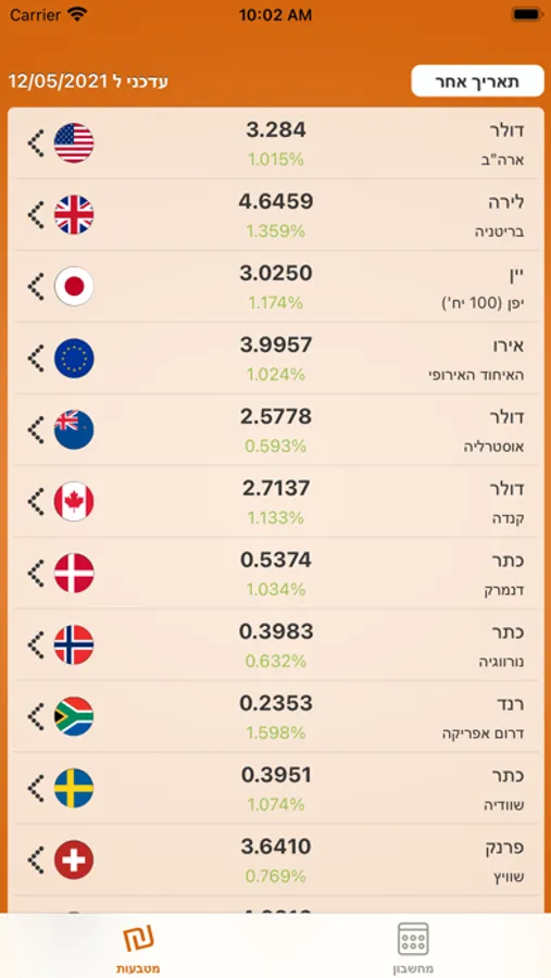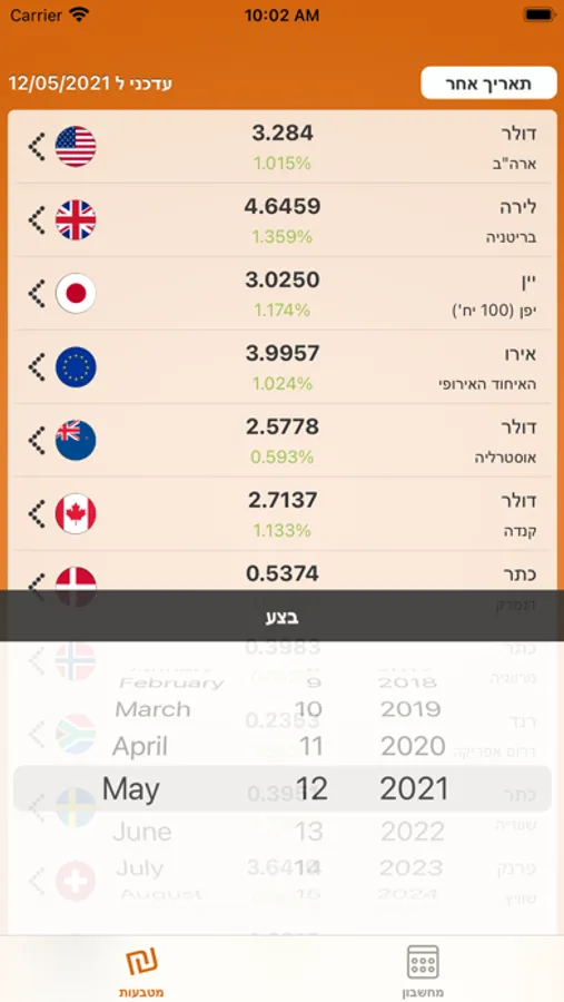 האפליקיה מספקת מחשבון המרה בין המטבעות השונים ומאפשר
