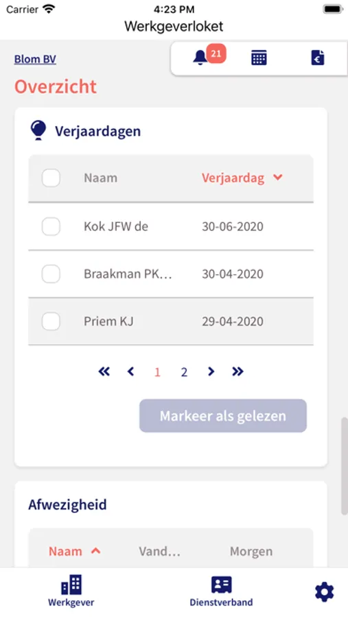 • Signalen ontvangen, zodat je nooit meer een belangrijk moment, zoals een verjaardag, van je medewerkers vergeet