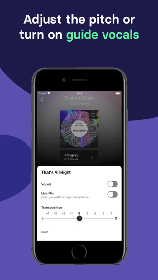 - Guide vocals – Helps you sing your way through an unfamiliar song