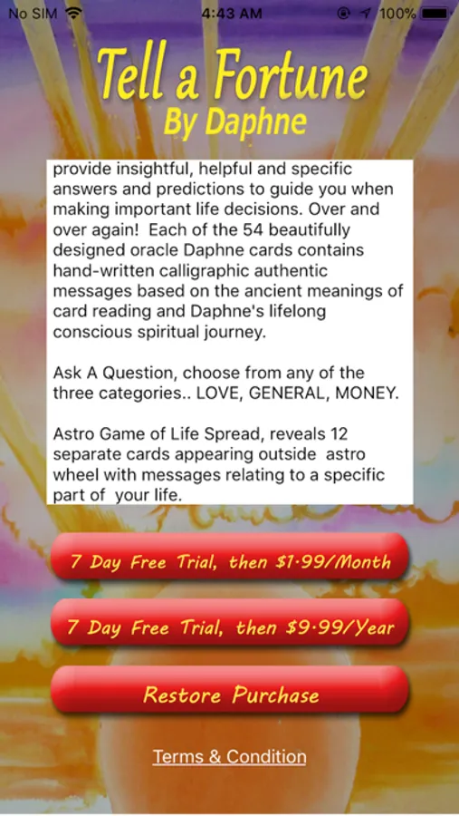 About the "Tell a Fortune by Daphne" Application.