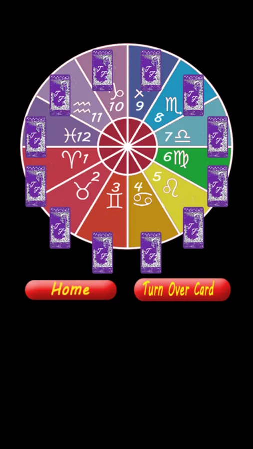 Astro Game of Life Spread, reveals 12 separate cards appearing outside astro wheel with messages relating to a specific part of your life.