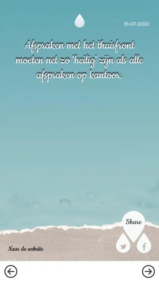 Druppels is dé nieuwe app voor (christelijke) ouders/opvoeders. Ontvang elke dag een kort maar krachtig stukje toerusting. Bijvoorbeeld een doordenker, praktische tip, eyeopener of Bijbelvers. Ideaal voor wie hongerig is naar toerusting voor de opvoeding, maar geen tijd heeft voor een boek of website.