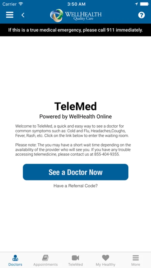 TeleMedicine: A quick and easy way to see a doctor for common symptoms such as: Cold and Flu, Headaches, Coughs, Fever, Rash, etc.