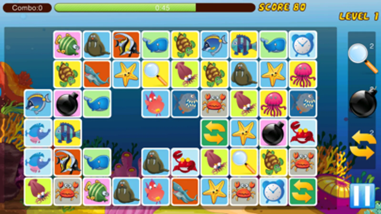 Aqua Link Up is an amazing connect and match brain teaser puzzle game, here to help you pass those boring moments with it’s simple yet addictive gameplay. Clear the lovely aquatic creatures by linking two of the same ones together to clear up all of them and move to the next level.