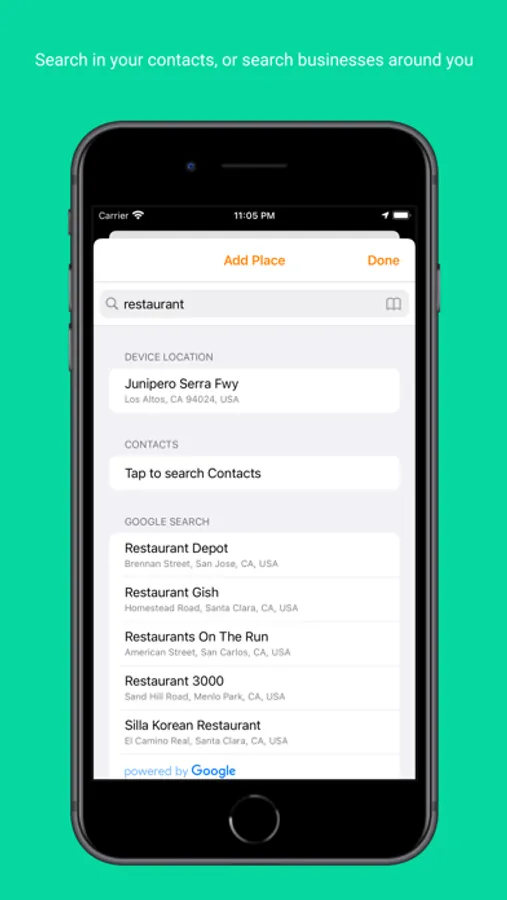 Just type in the name of a contact or a business. And see the address pulled up. Select the address and add some more. That's it.