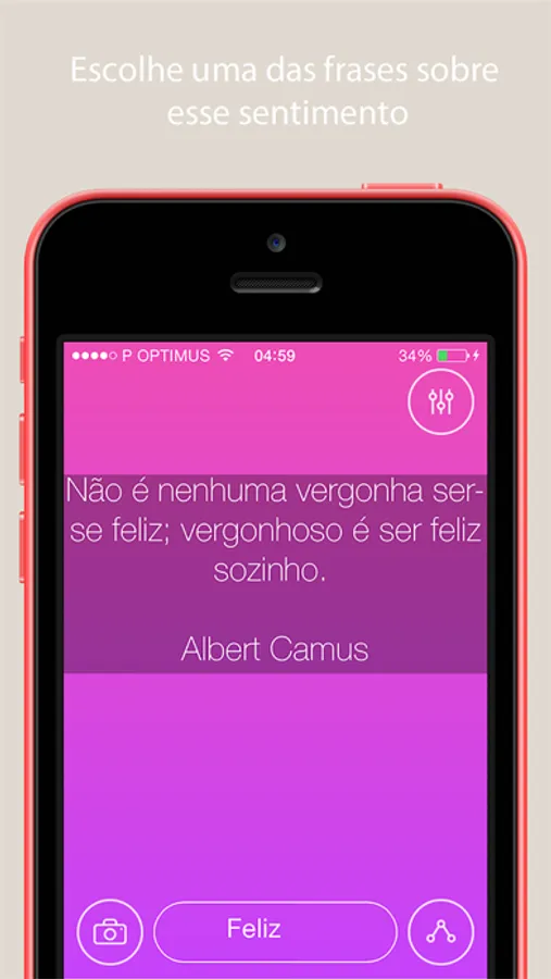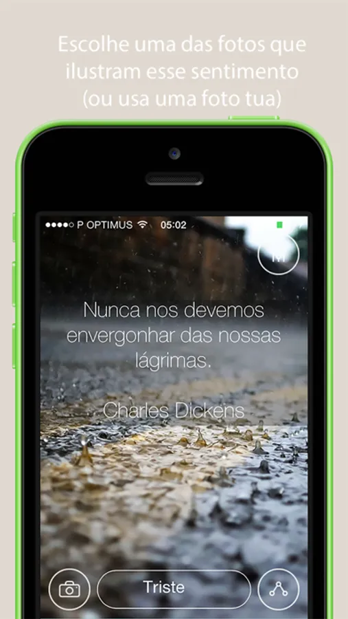 Achou a frase ideal? Pressione o écran por dois segundos para receber uma foto mágica que ilustra a frase.