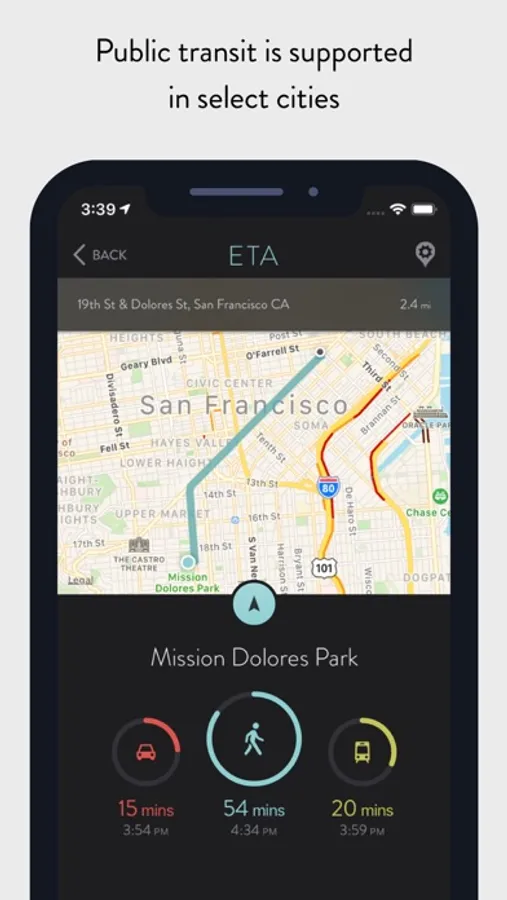 You can rely on ETA to show you travel time on the watch face of your Apple Watch. Whether you travel by car, bike, public transit or foot, ETA will update in the background and show you an updated travel time as you move. ETA adheres to Apple's guidelines and updates at minimum every 15 minutes ensuring your watch face displays current travel time and traffic conditions.