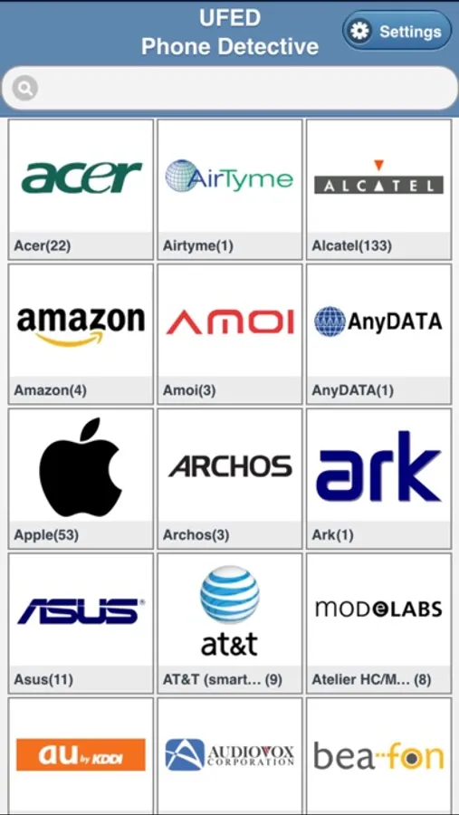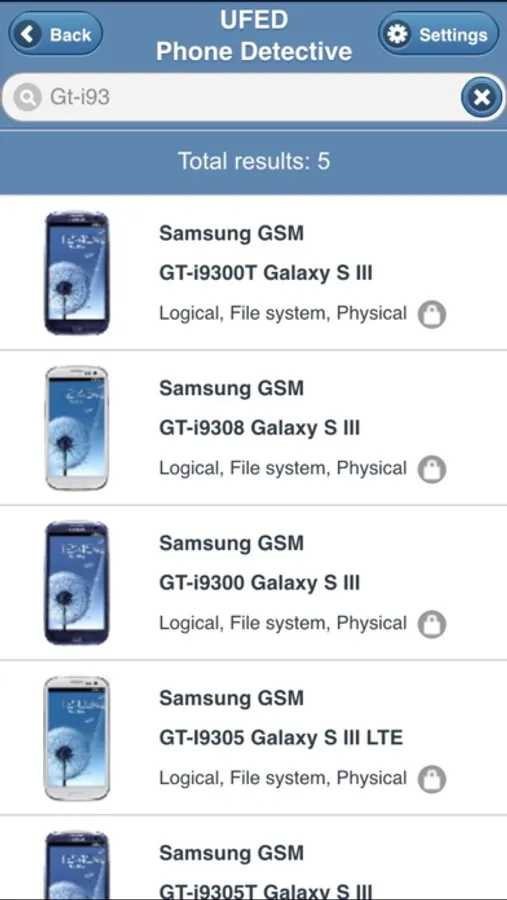 Use the UFED Phone Detective mobile app to search vendors and mobile device names. If needed, easily drill down to specific support information, including whether the extraction can bypass the device's lock.
