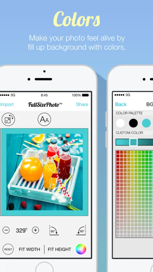 Make any size of your photos perfectly fits in 1:1 square size for Instagram. Square fit to make white frame or fill up background with any colours.