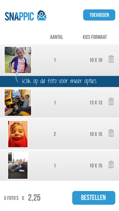 Installeer nu Snappic, Shoot & Print en ervaar hoe eenvoudig het is om foto’s te bestellen direct vanaf je smartphone of tablet. We printen op professioneel Kodak printpapier en corrigeren alle foto’s op helderheid en kleur. De kleuren van onze prints zijn 75 jaar gegarandeerd. Naast foto’s kunt je ook canvas en fotogeschenken bestellen via Snappic.