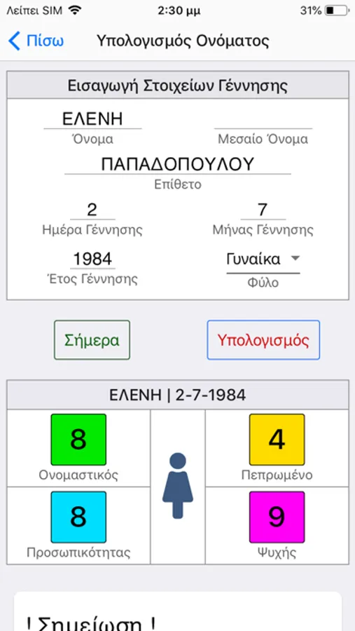 3) Εύρεση των Αριθμών Προσωπικότητας και Ψυχής.