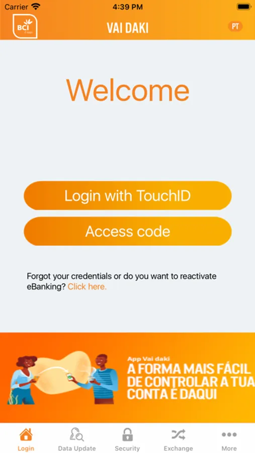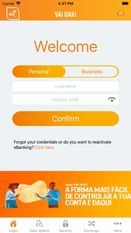 Para aceder use os seus dados de utilizador do BCI Directo eBanking.
