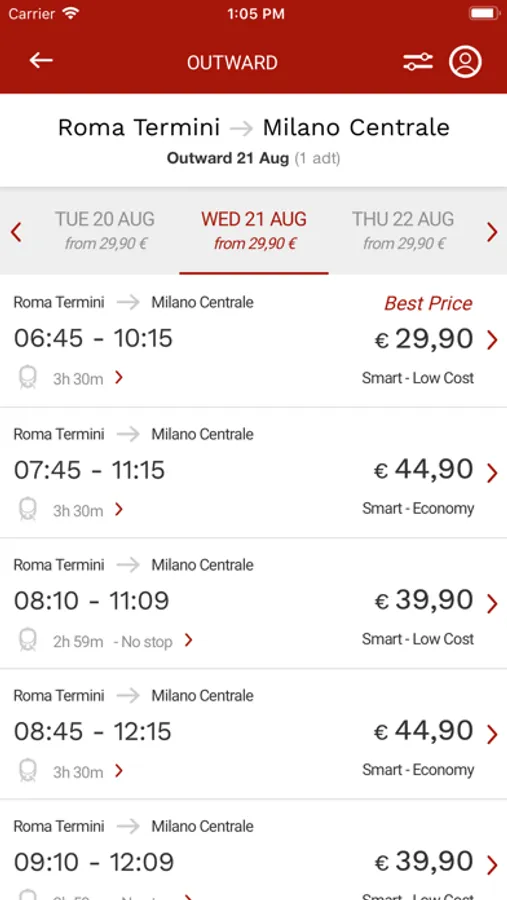 With the new app, your Italo Più loyalty card also goes digital so you can choose reward tickets with a couple of swipes of your finger.