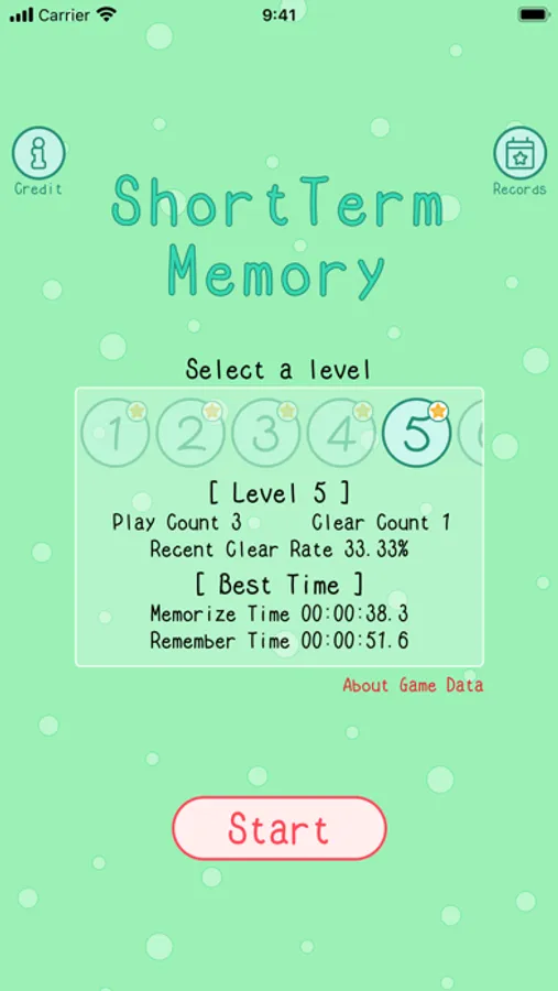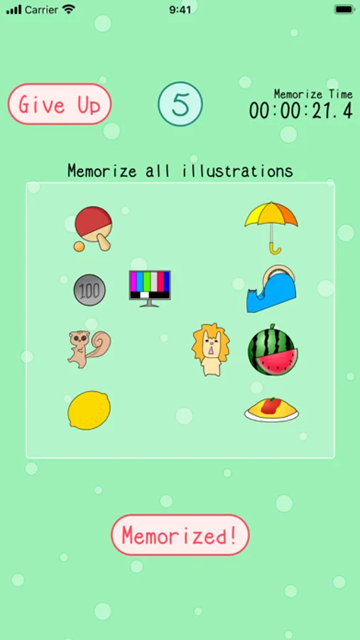 Game levels are 1(Memorize 2 illustrations) to 10(Memorize 20 illustrations) and more.