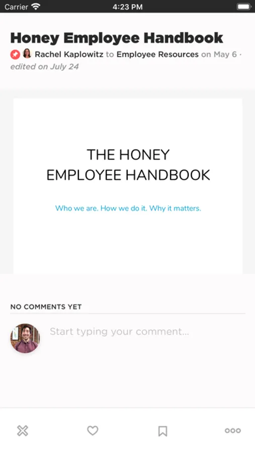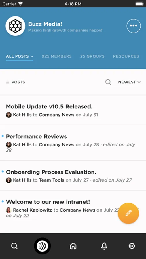 Honey is a company’s single source of truth, a place for employees to find announcements, industry news, company policies, important files, documentation, coworker information, and links to other tools. It’s everything happening at your company in one simple, private place.