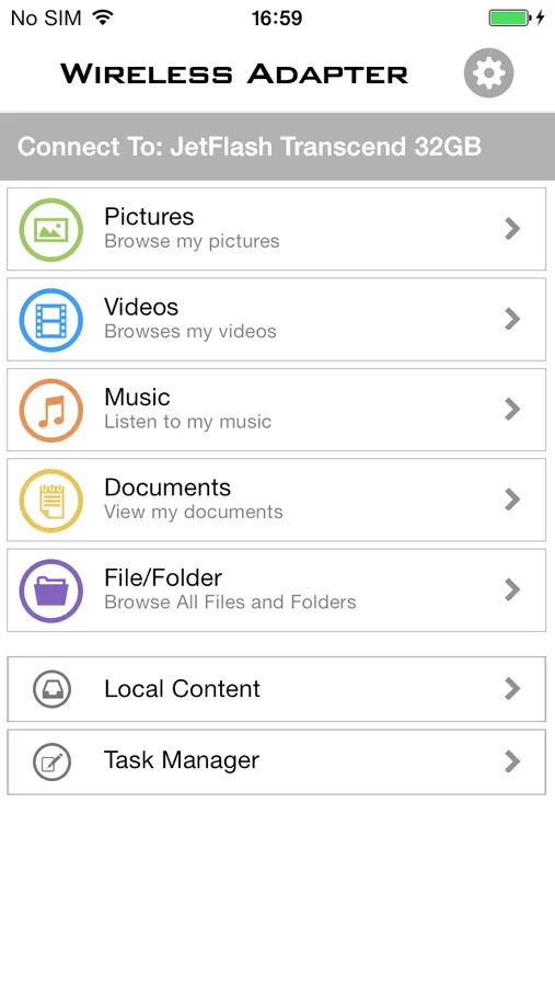 The "Toshiba Wireless Adapter" app gives you an easy way to enjoy music / photos / movies, backup mobile data, and organize files.