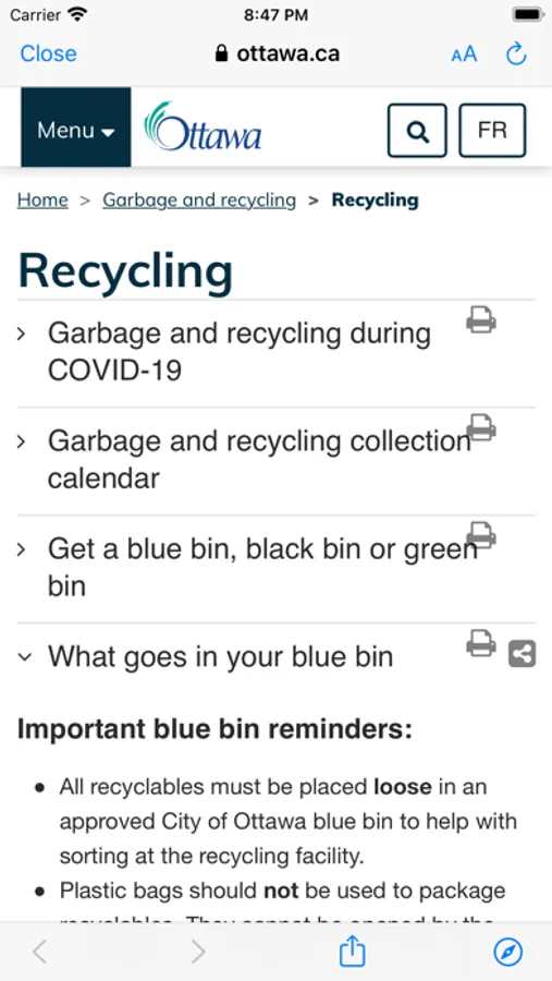 • Quick access to garbage and recycling rules—tap on a bin to see the official instructions from the City of Ottawa website
