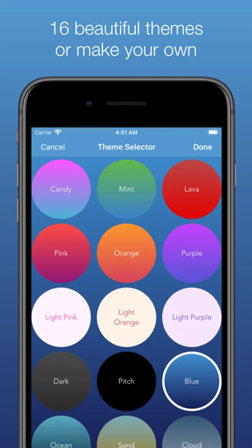 - Apply 16 beautiful themes including new entrants Candy, Mint, Lava and a set of “bright themes”.