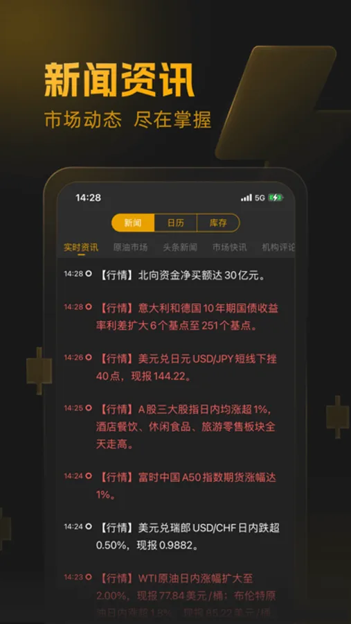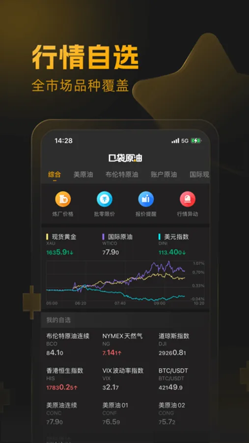 【行情自选】:支持国内外全市场品种,原油行情,一应俱全