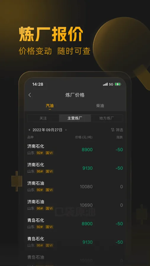 【炼厂报价】:同步主营、地方炼厂报价,价格变动,随时可查