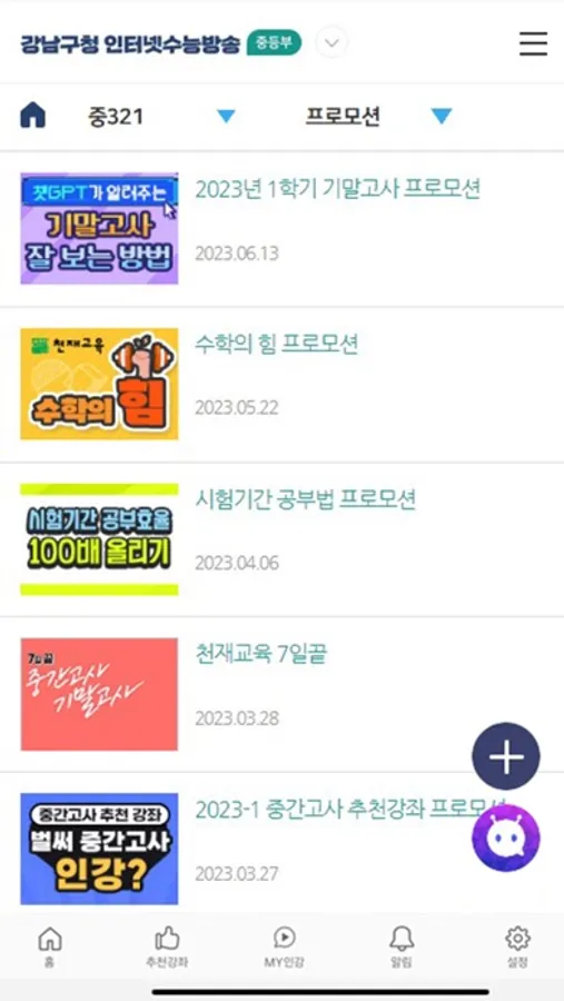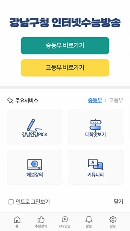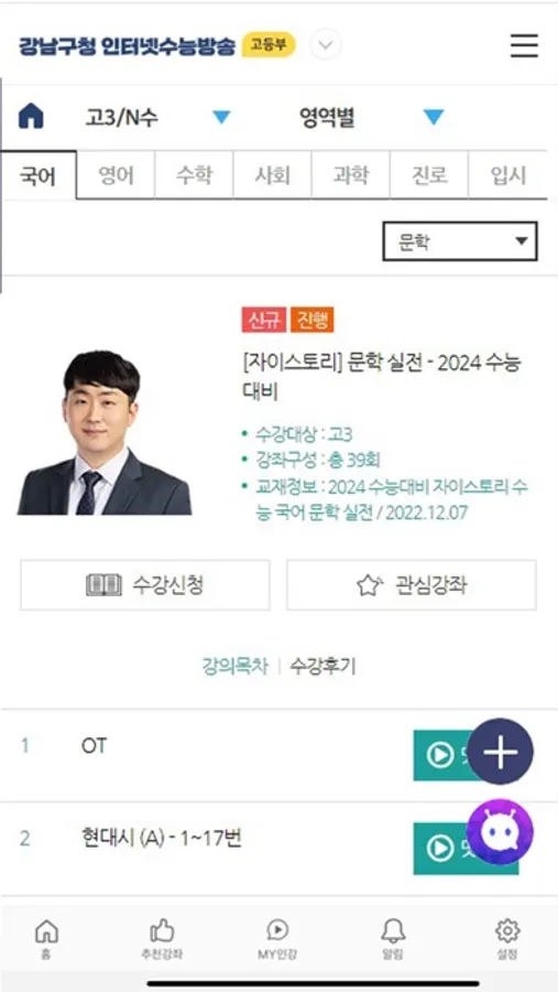 - 학년별 과목별 강좌를 모두 조회하고 바로 수강신청 후 학습 가능