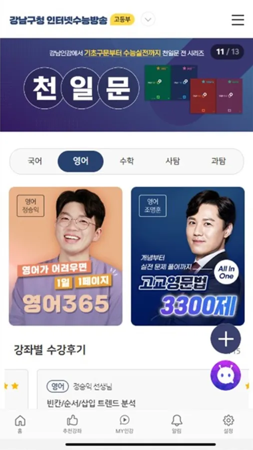 인터넷 강의에도 품격이 있습니다. 강남인강은 스타강사와 함께 체계적인 맞춤학습을 제공합니다. 강남인강과 함게 자기 주도적인 학습의 능력을 키우고, 쑥쑥 올라가는 성적을 눈으로 확인해보세요.