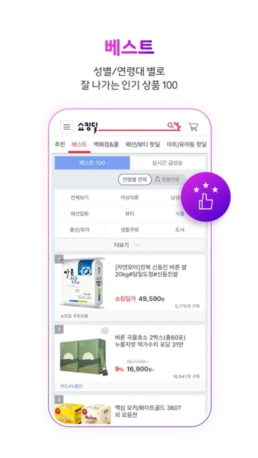 - 성별/연령대 별로 잘 나가는 인기상품 "베스트"