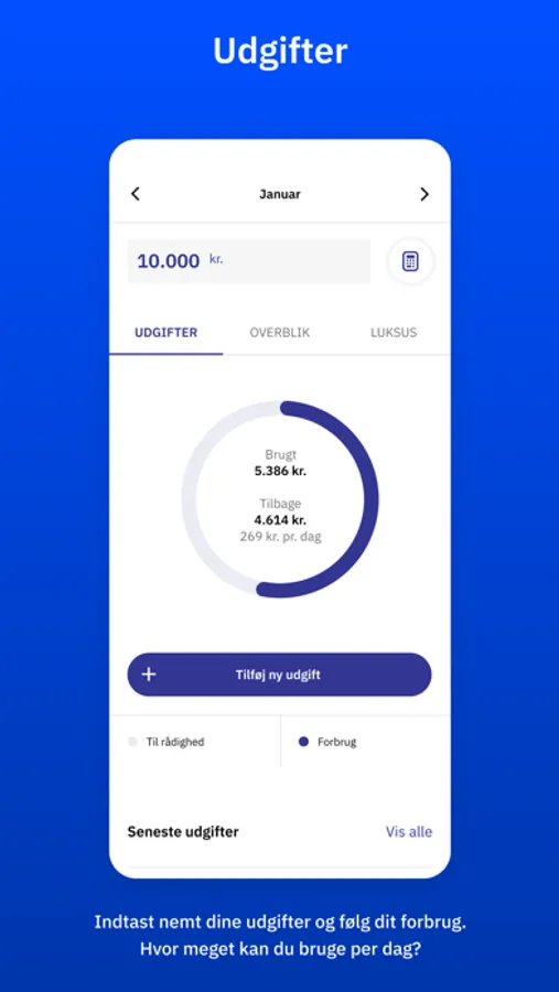 • Løbende indtaste dine udgifter til forbrug