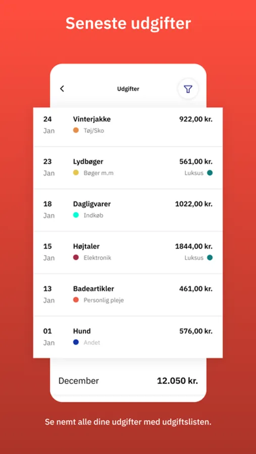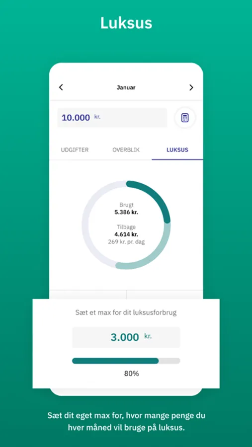 • Følge med i, om du holder dig inden for dit max beløb for luksus hver måned
