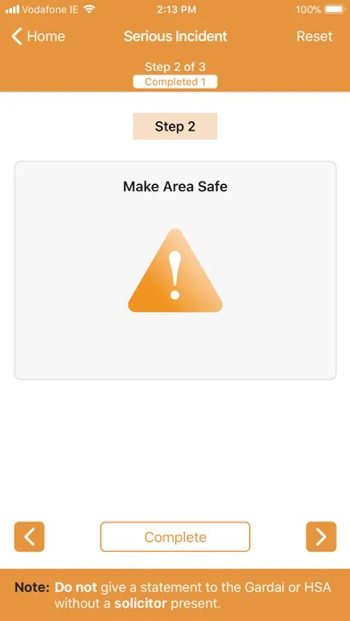 The Safe@Work App outlines the key steps that staff need to take in the event of a serious workplace incident.