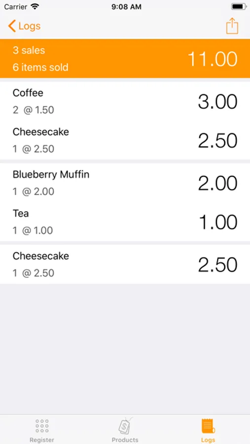 • Export sales logs via email in a format compatible with your favorite spreadsheet