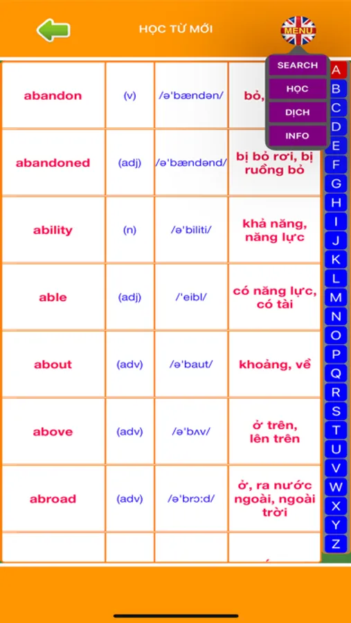 - Tìm kiếm từ mới để học.