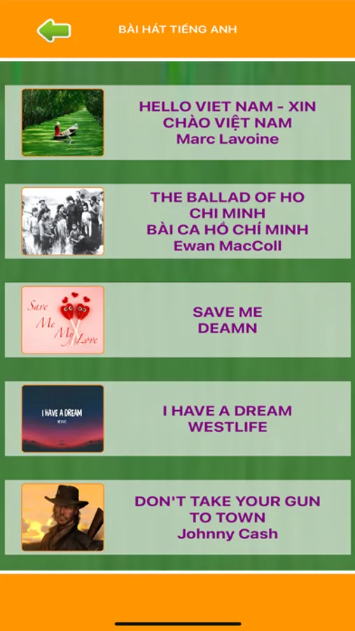 - Học tiếng anh qua các bài hát hay .