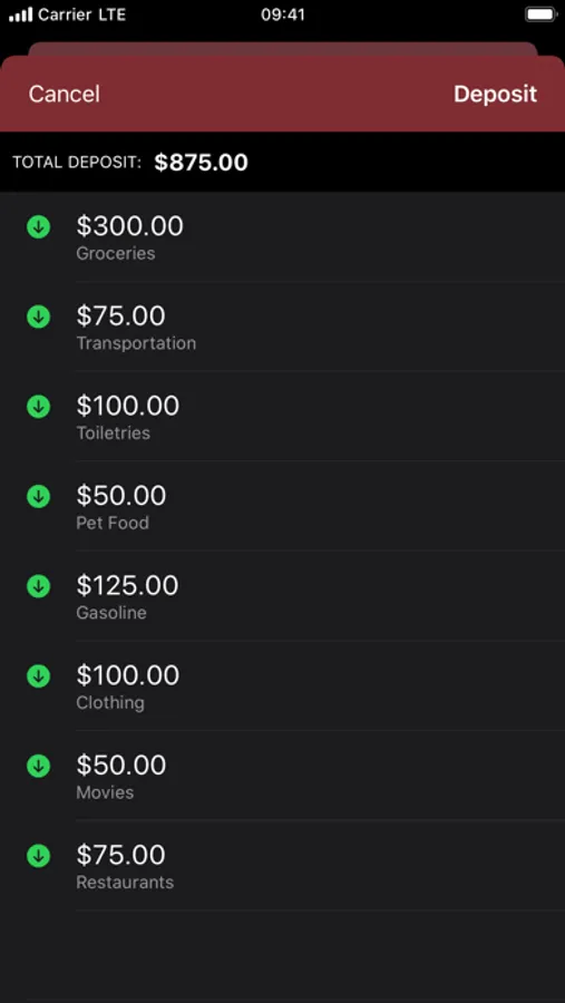 ∙ Set up a budget with Quick Deposits and distribute your income to all your envelopes at once.