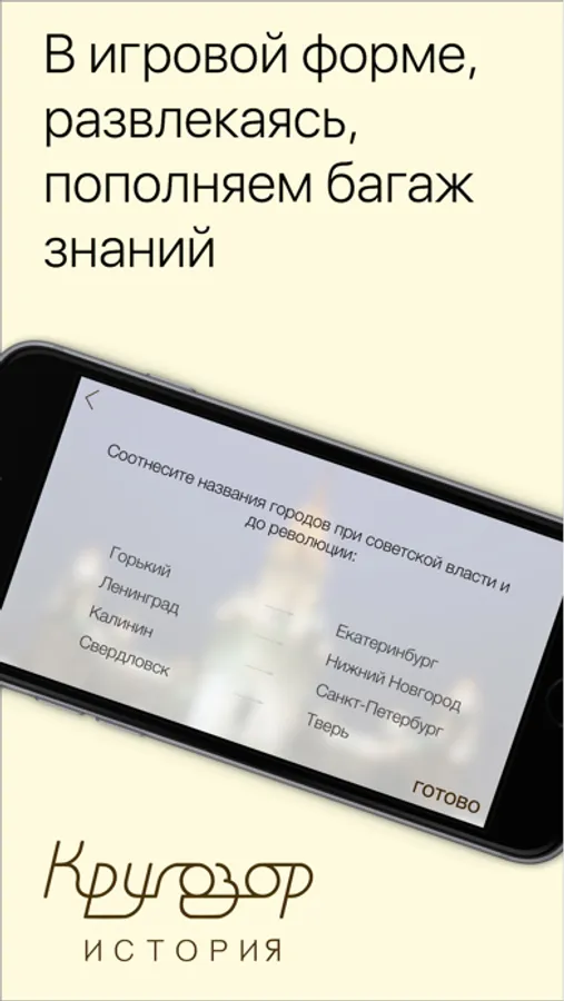 Не нужно читать скучные исторические учебники и мемуары. Вы просто играете в Кругозор, проходите уровни, отвечая на вопросы, а знания укладываются по полочкам в вашей голове. Скачайте и попробуйте, почему бы и нет?