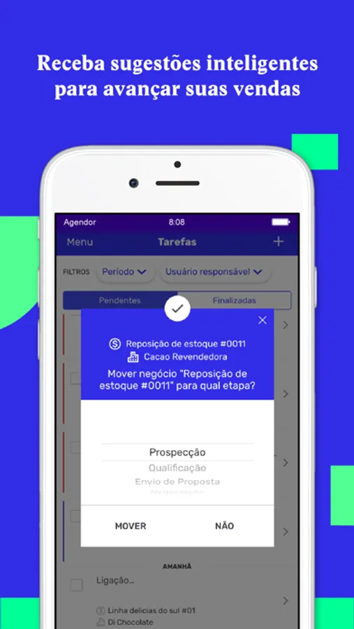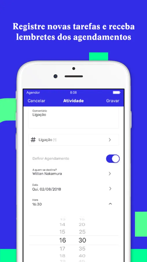 • Envia lembretes de reuniões, ligações e outras atividades automaticamente.
