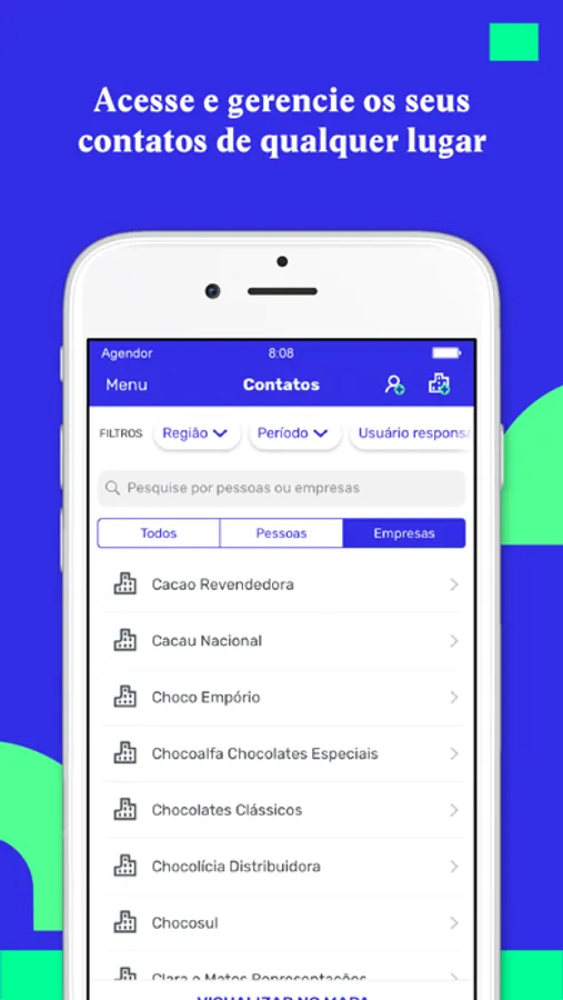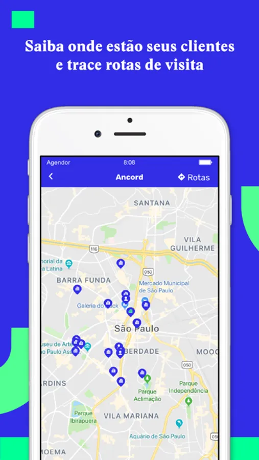 • Geolocaliza clientes no mapa para otimizar visitas comerciais.