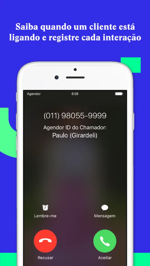 • Identifica o cliente que está ligando, mesmo que ele não esteja cadastrado em sua agenda telefônica.