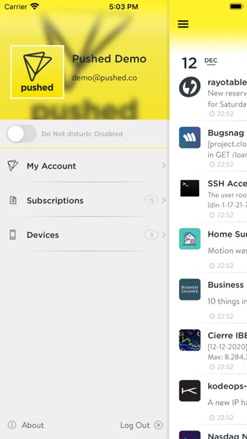 Pushed is your personal notification center with super awesome services. The app allows you to receive notifications when something important happens. Wait... but, what is something important? Everything! Pushed is an open platform where everyone, developers, companies (no matter the size of them) or individual users can build new awesome services and send push notifications. No coding skills are required. With Pushed content creators will be able to send push notifications without developing their own app.