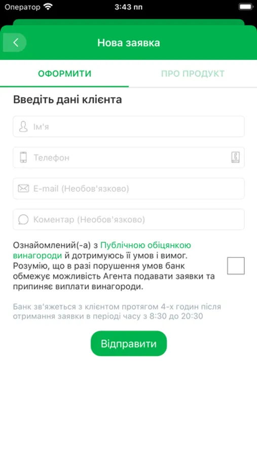 - відправляти в банк заявки на клієнтів, яких цікавлять банківські продукти