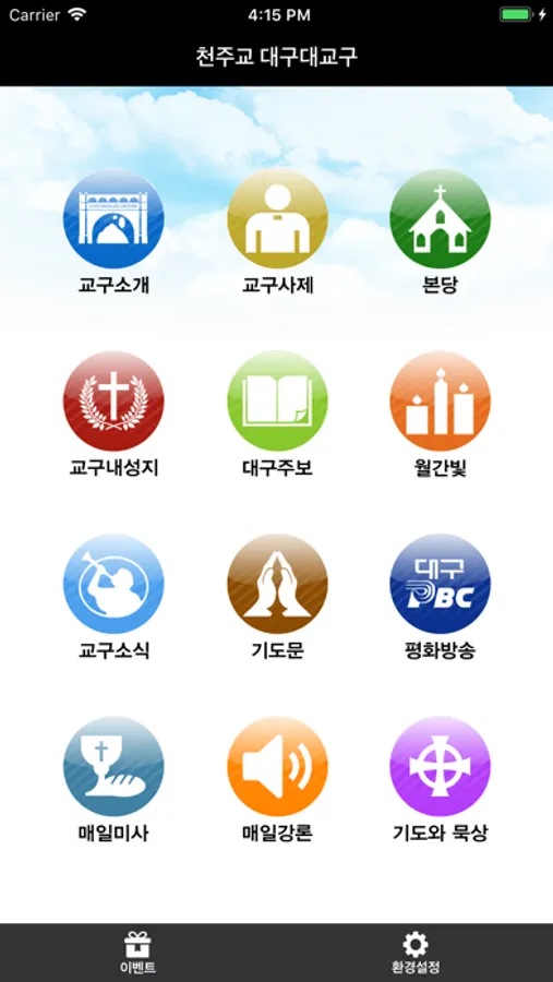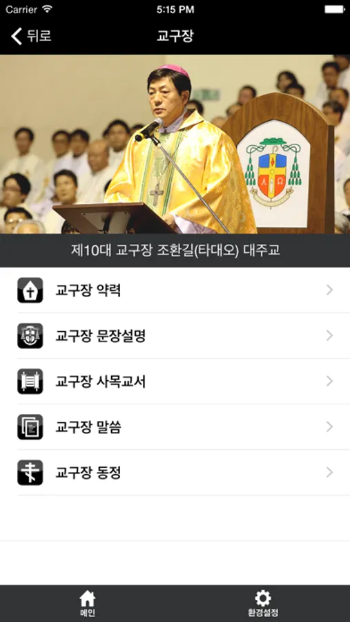 교구소개, 교구사제, 본당, 교구 내 성지, 대구주보, 월간빛, 교구소식, 기도문, 평화방송, 매일미사, 매일강론, 팟캐스트