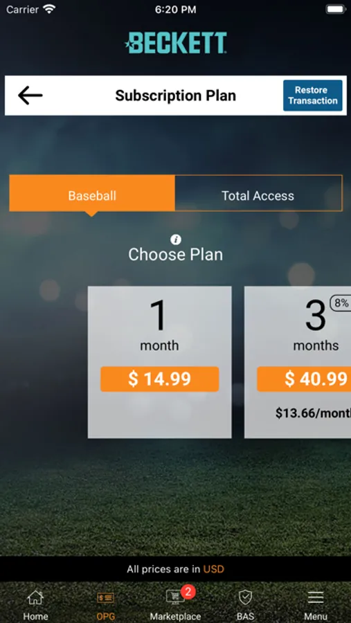 Single Sport OPG: Access price guide for your preferred sport though web as well as iOS-iPhone and iPad.