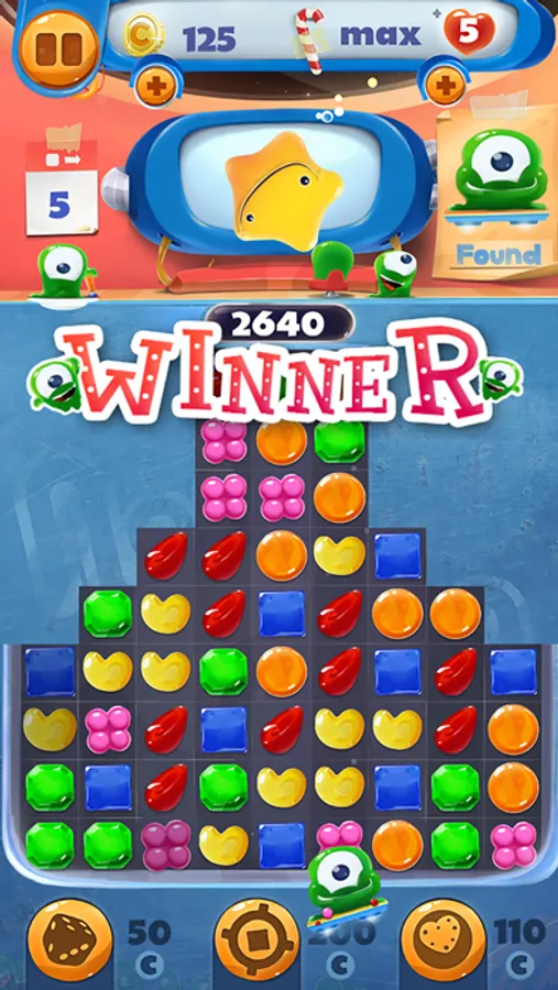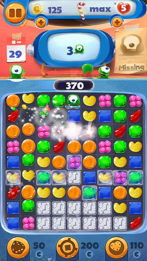 Join your alien friends in their adventure through space . Match three in a row and activate amazing blast effects. Similar to jewel quest and other gem matching games this brain teaser is a total hit with juicy shining candies. Match 3 candies of the same color and shape, activate amazing effects accompanied by blasting sounds, crush candies and have fun playing one of the most popular logic games of today.