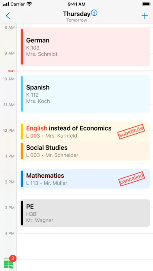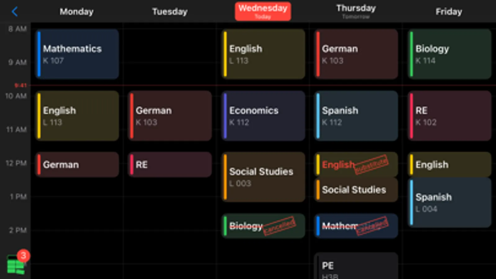 Latest substitution plan directly for your iPhone and iPad. Stay up to date automatically and be aware of your timetable at all times!