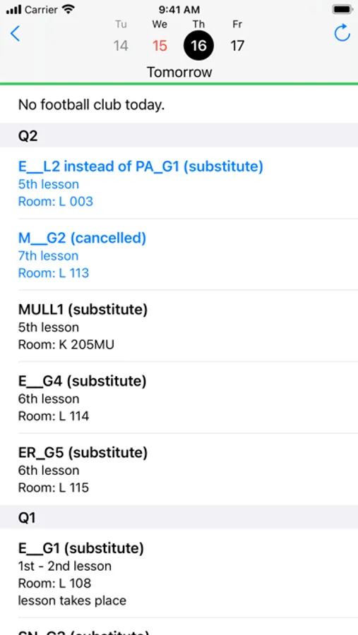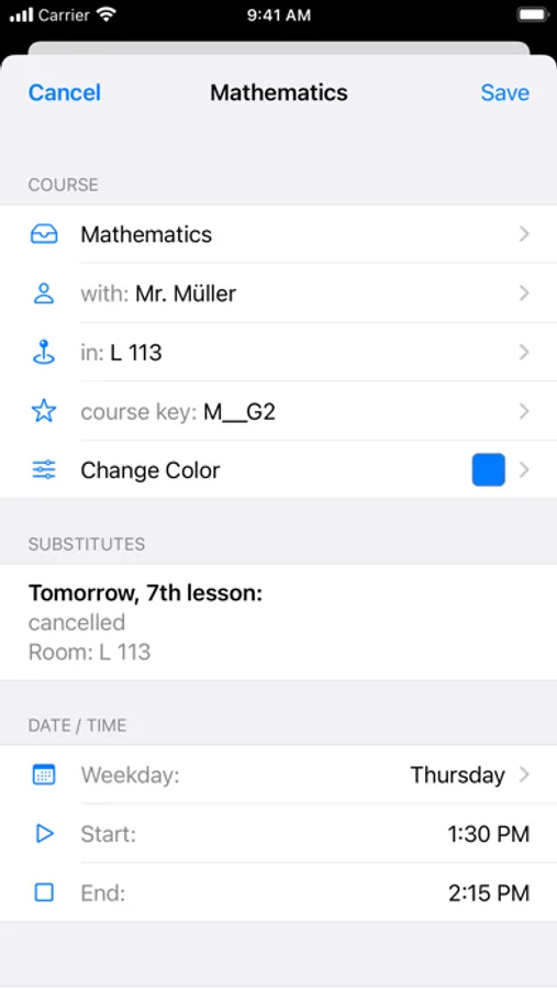 Choose your school, enter your courses and that's all you need to be informed about all your substitutions. Your courses are automatically synchronised with the substitutions and displayed to you. No more annoying course matching, because from now on all you need to do is take a quick look at this app and you'll know when you have which substitutions.
