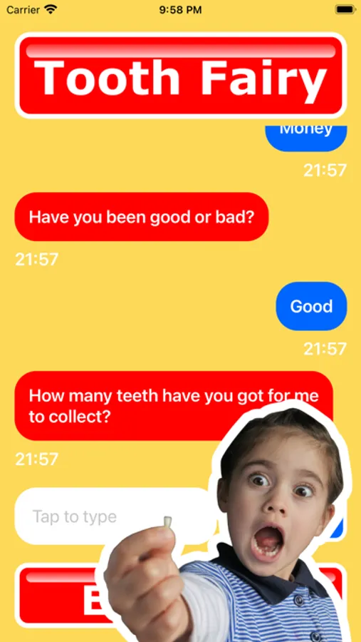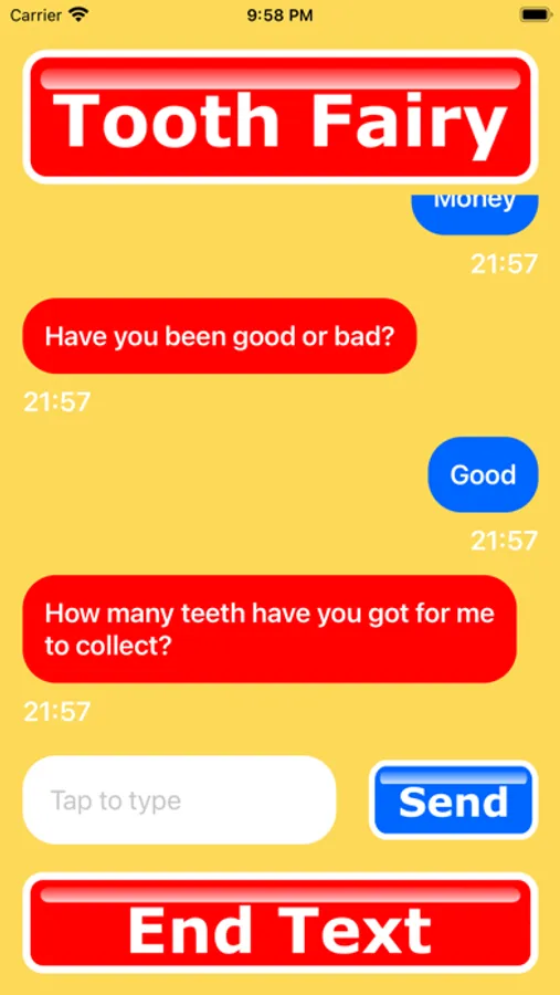 - *Text message Tooth Fairy and she replies just like real! No airtime or data is used as it is not a live text.