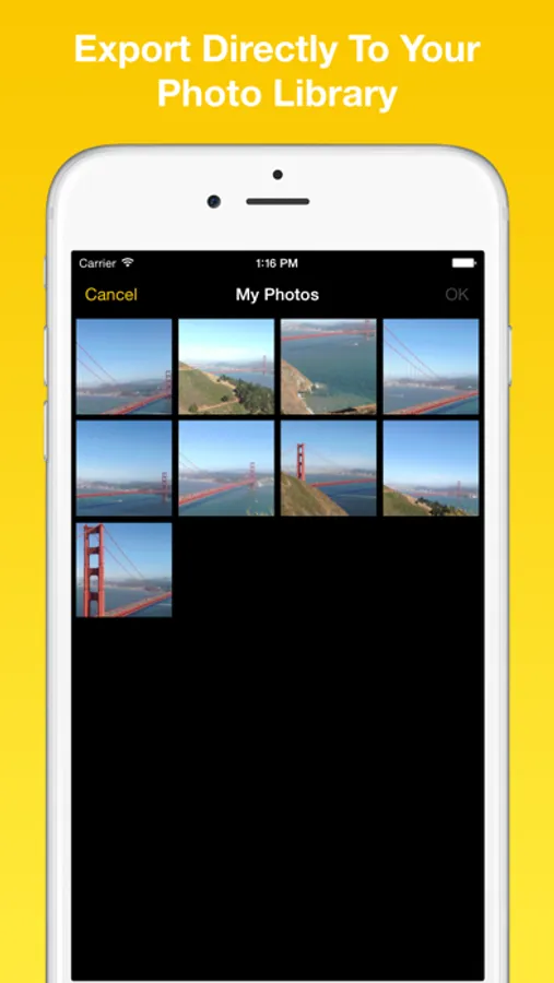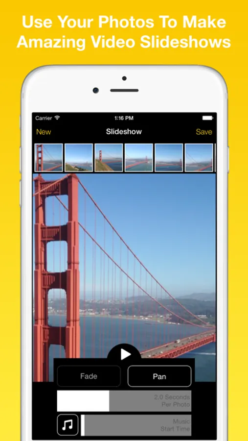 Use your photos to create amazing video slideshows! Select your photos, crop, re-arrange, adjust timing, and select your effects. Add your favorite song from your music library or use our music. Then, export directly the Photos app to share on your favorite social networks.