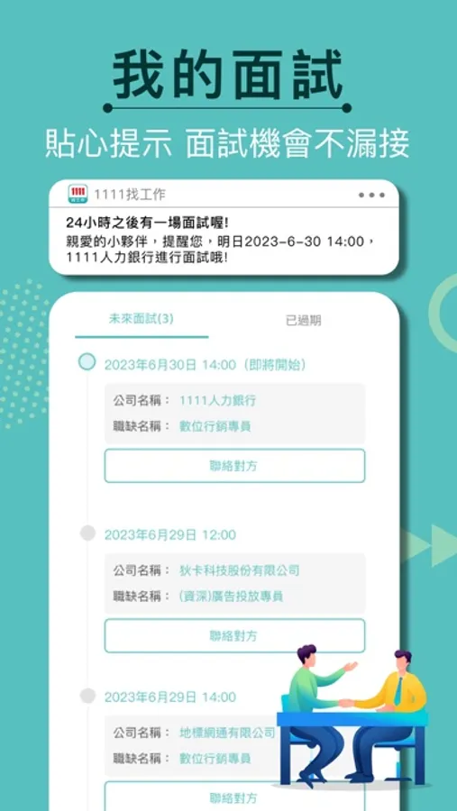 面試前24小時提醒你,再多邀約都不怕漏接。