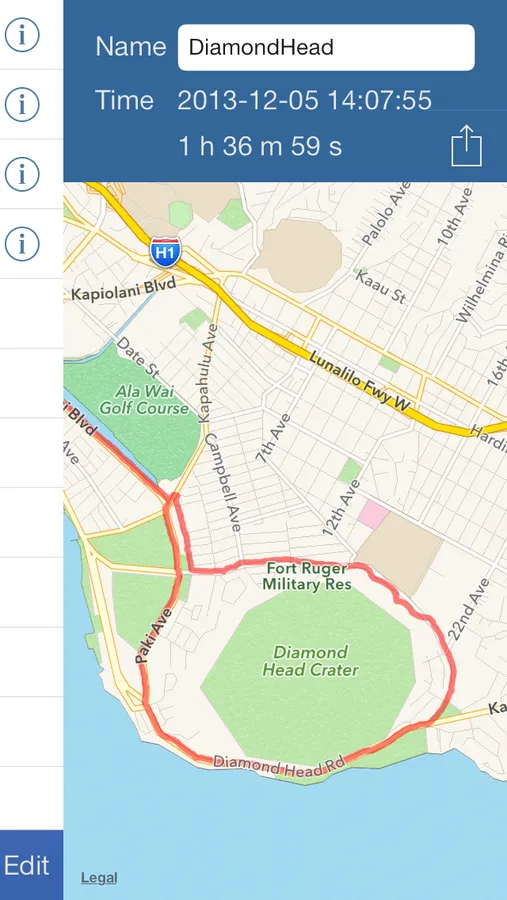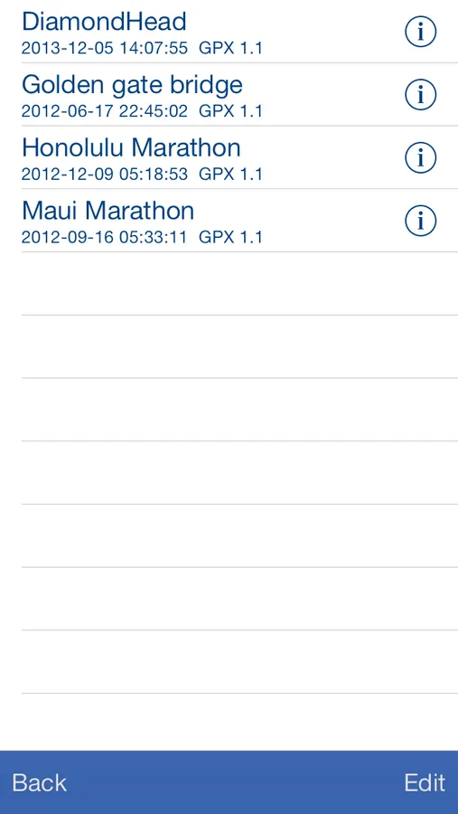 These information will be saved as GPX (GPS eXchange format) data and can share with your friends via AirDrop, Message and Mail.Tapping GPX data in Message or Mail automatically launch GeoPlayer and show its data. You can also import/export GPX data via iTunes file sharing.