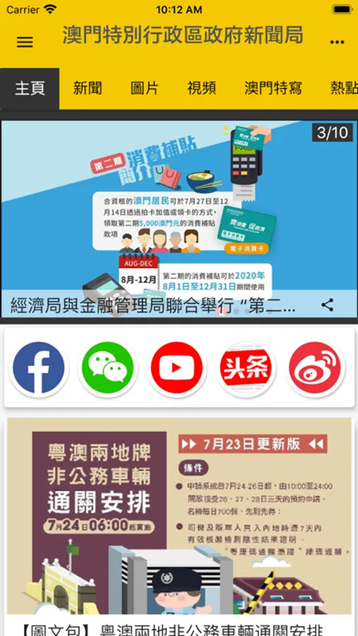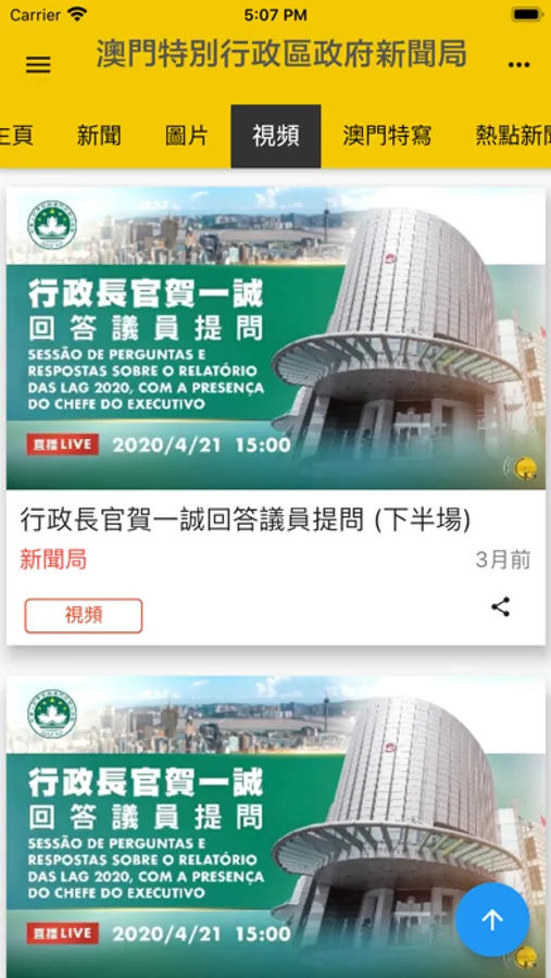 “Macao Government News” is a mobile device application developed by the Macao Government Information Bureau that provides latest official information regarding public policies, government news, photographs and videos. This app is available in Traditional Chinese, Simplified Chinese, Portuguese and English. In its initial launch, the app offers seven sections: News, Gallery, Videos, Special Topics, Magazine, Hot News and Hot News Photos. Under the News section, there are 21 categories available for users to subscribe to.